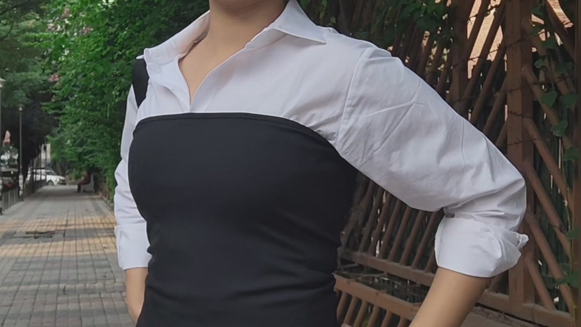 Dark blue striped shirt | off white high waist trouser (1set ear ring free)
