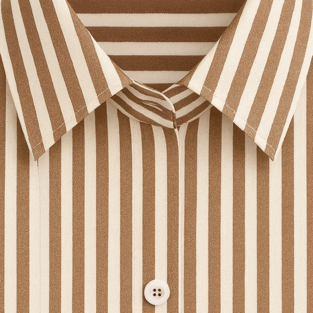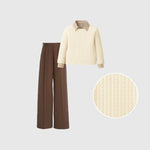 Classic Brown Striped Shirt with Pleated Trousers & Cable-Knit Sweater Coordinate Set