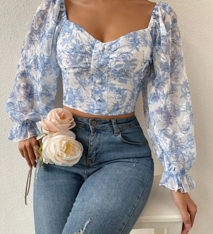 X-Cross Off-Shoulder Full Sleeve Crop Top – Chocolate Brown