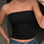 Its strapless silhouette creates a sleek neckline, making it perfect to pair with jeans, trousers, or skirts. Lightweight, stretchable, and easy to wear, this piece works effortlessly for casual outings as well as evening looks.