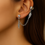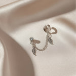 Silver Dual Chain Leaf Drop Cuff Earring (Single Piece)