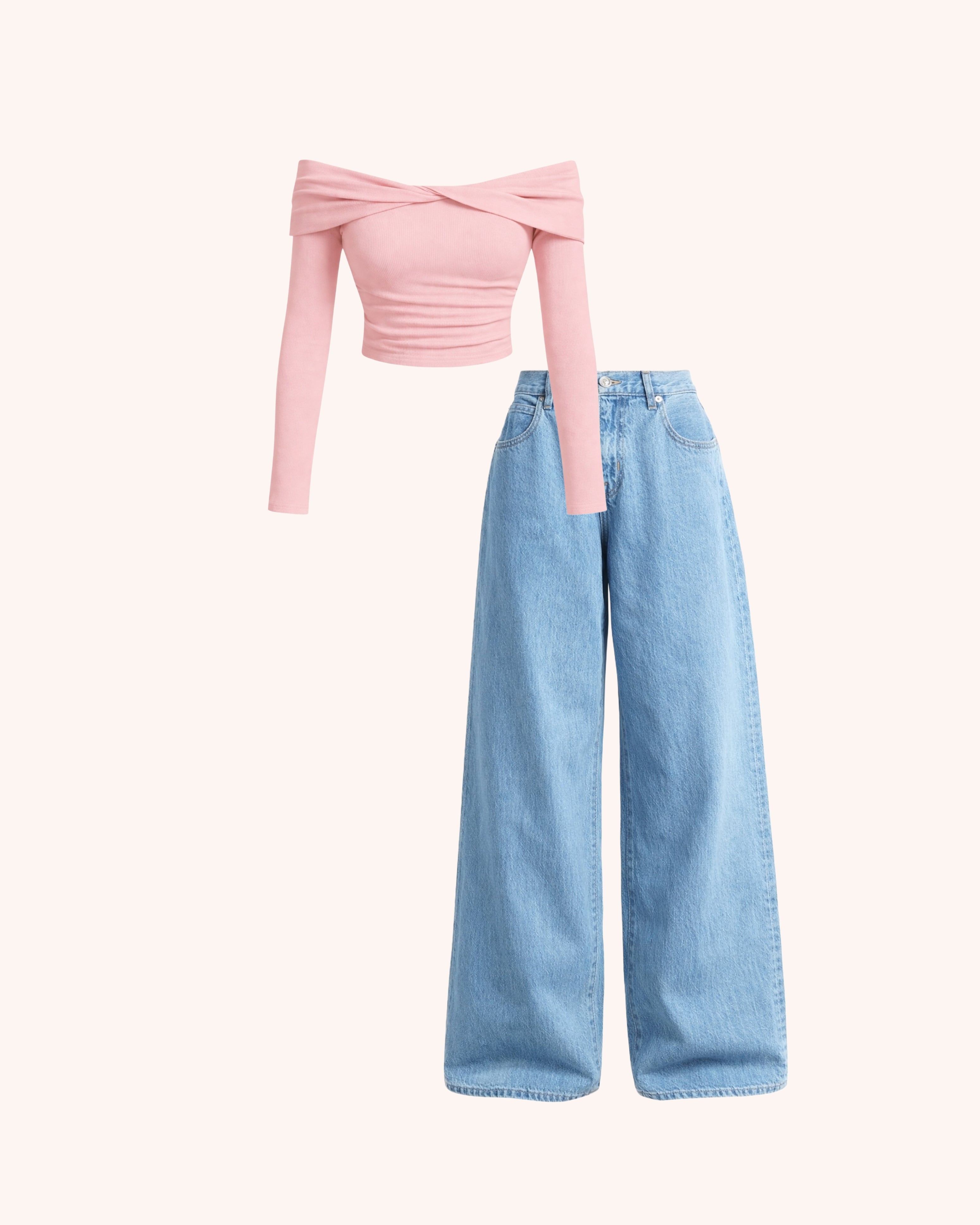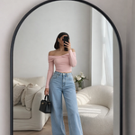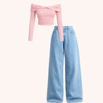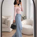 This look features a soft poly rib off-shoulder top designed to hug the body perfectly while highlighting the shoulders with effortless elegance. The fabric is lightweight, stretchable, and smooth, offering all-day comfort with a refined finish.
