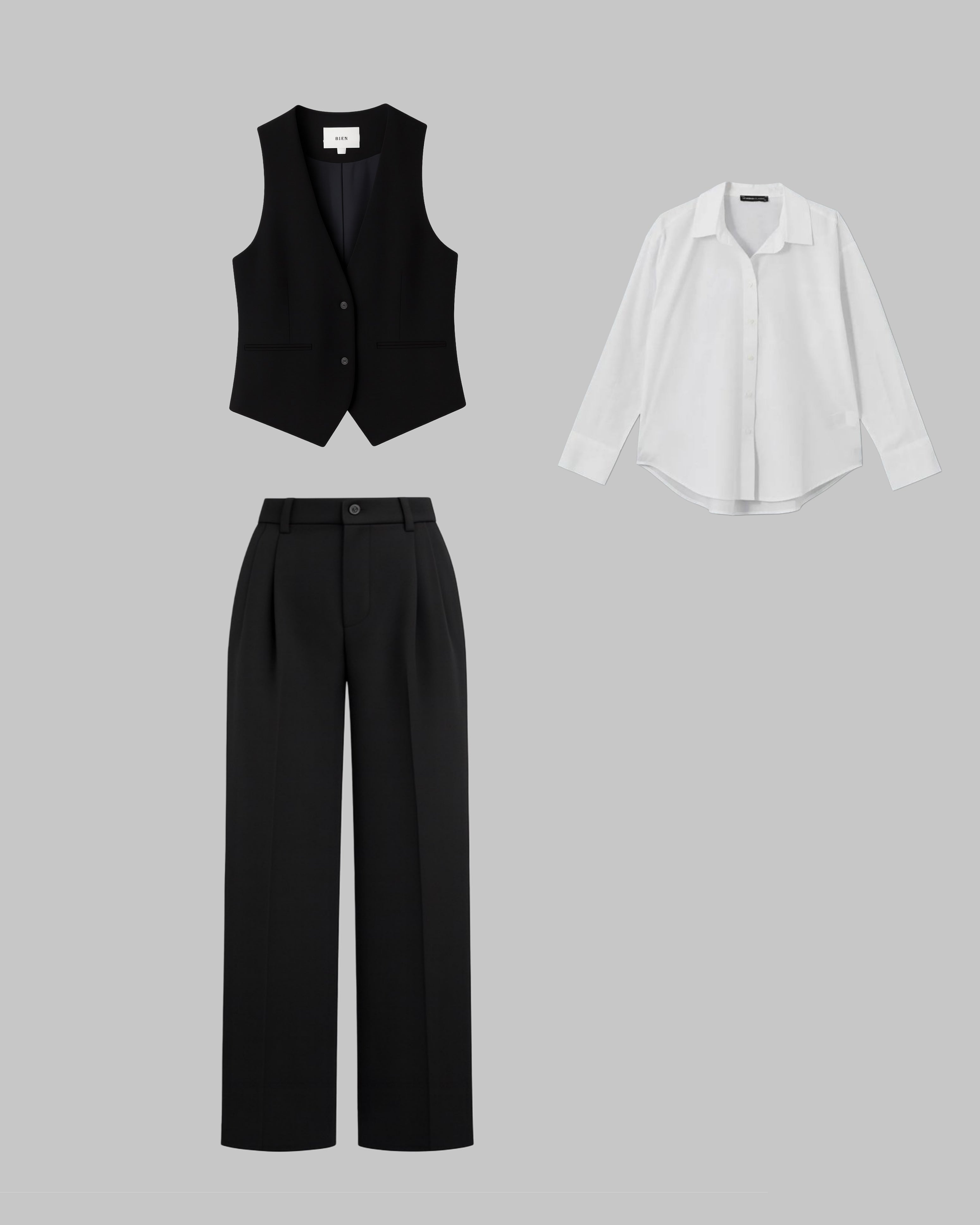 Black Three Piece Suit Set for Women (Shirt + Vest + Pleated Pants) - Full set