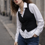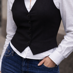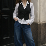 Classic Waistcoat Shirt & Wide-Leg Denim Co-Ord Set | Black