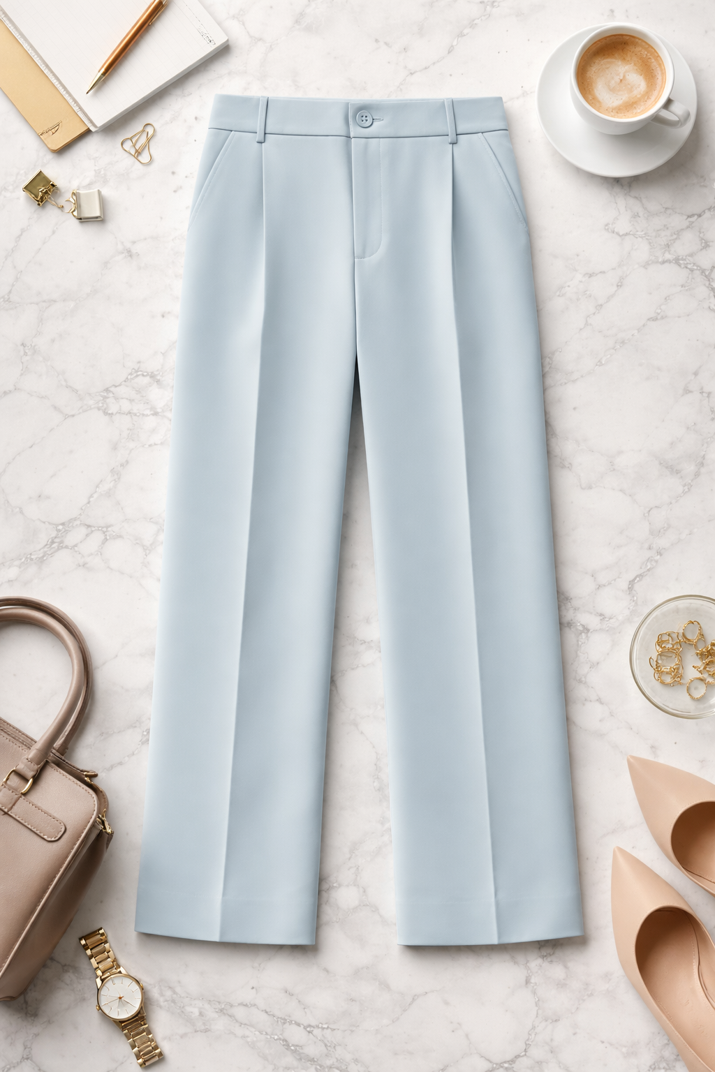 Powder blue high waist formal pant | Pleated