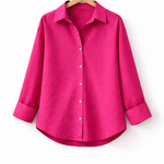Designed with a classic button-down front, a relaxed fit, and long sleeves with cuffed ends, it strikes the perfect balance between casual charm and refined elegance. The fabric’s smooth drape flatters every silhouette, while the vibrant color options make it easy to mix and match with your favorite jeans, skirts, or trousers.