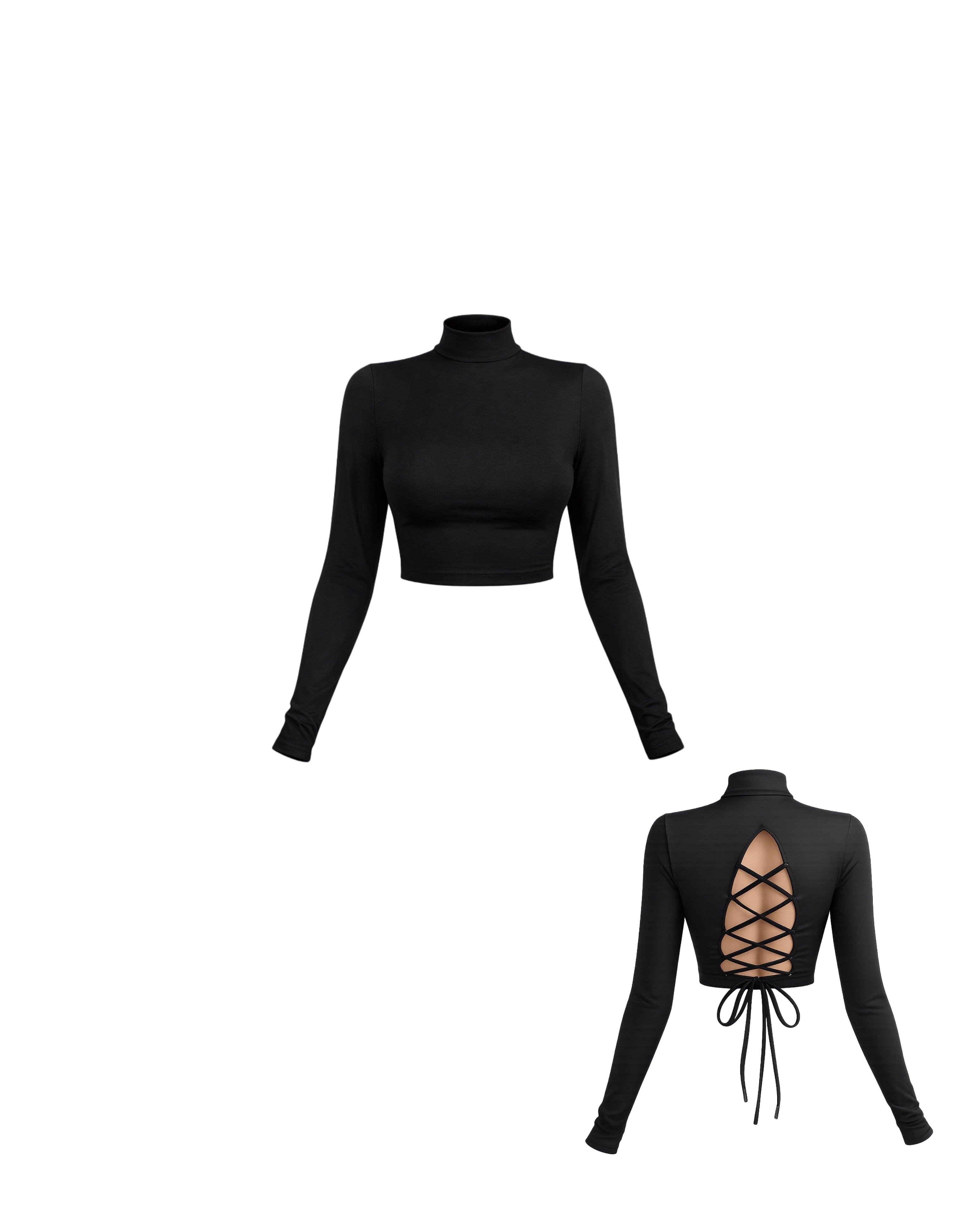 Elevate your everyday style with this sleek high-neck crop top featuring a striking lace-up back design. Crafted for a flattering, body-hugging fit, it blends modern minimalism with statement detailing — perfect for day-to-night looks.