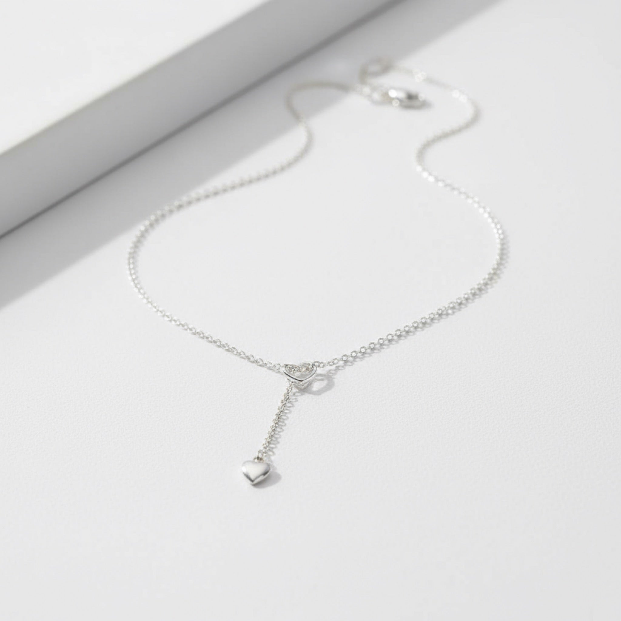 Silver Heart Lariat Necklace