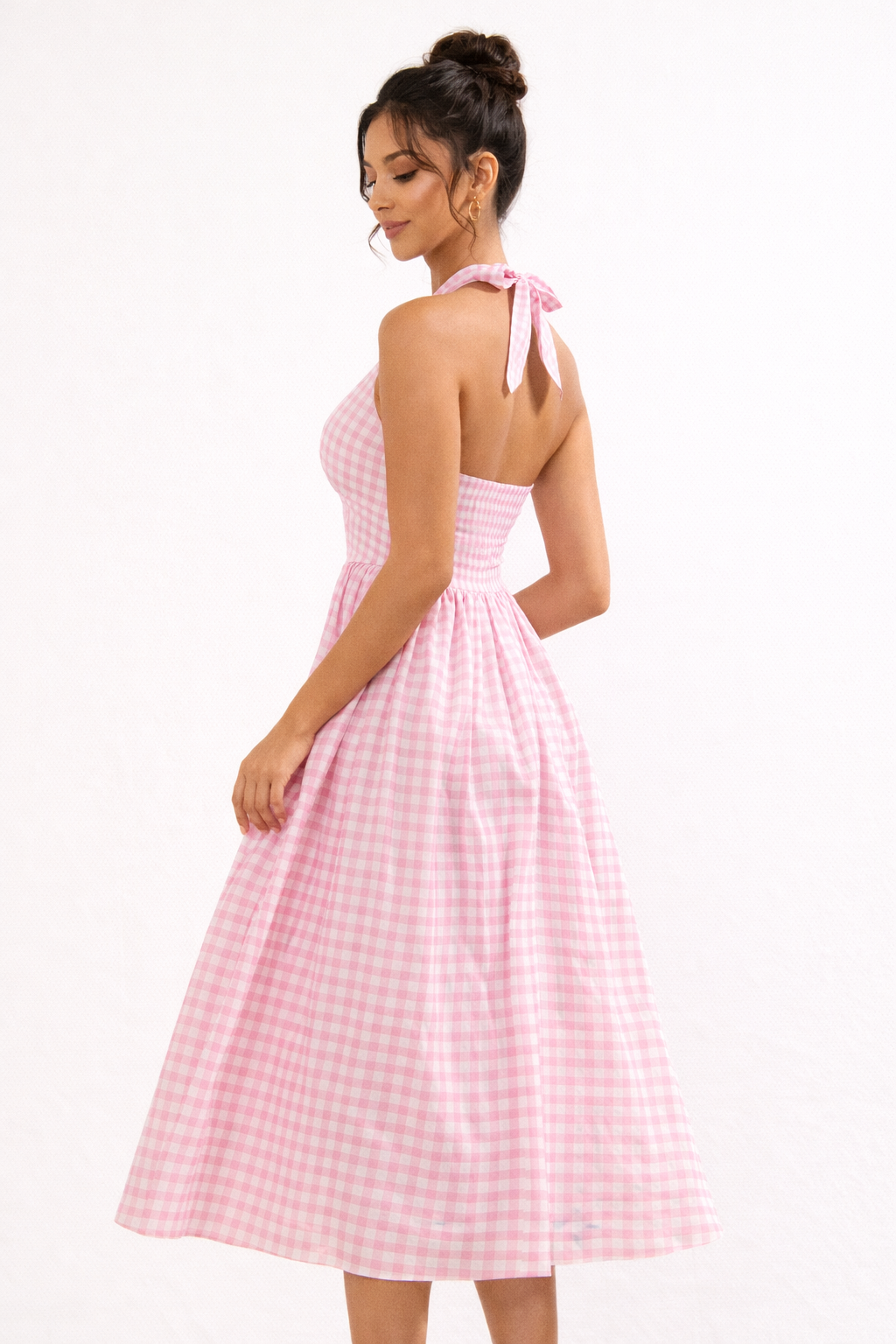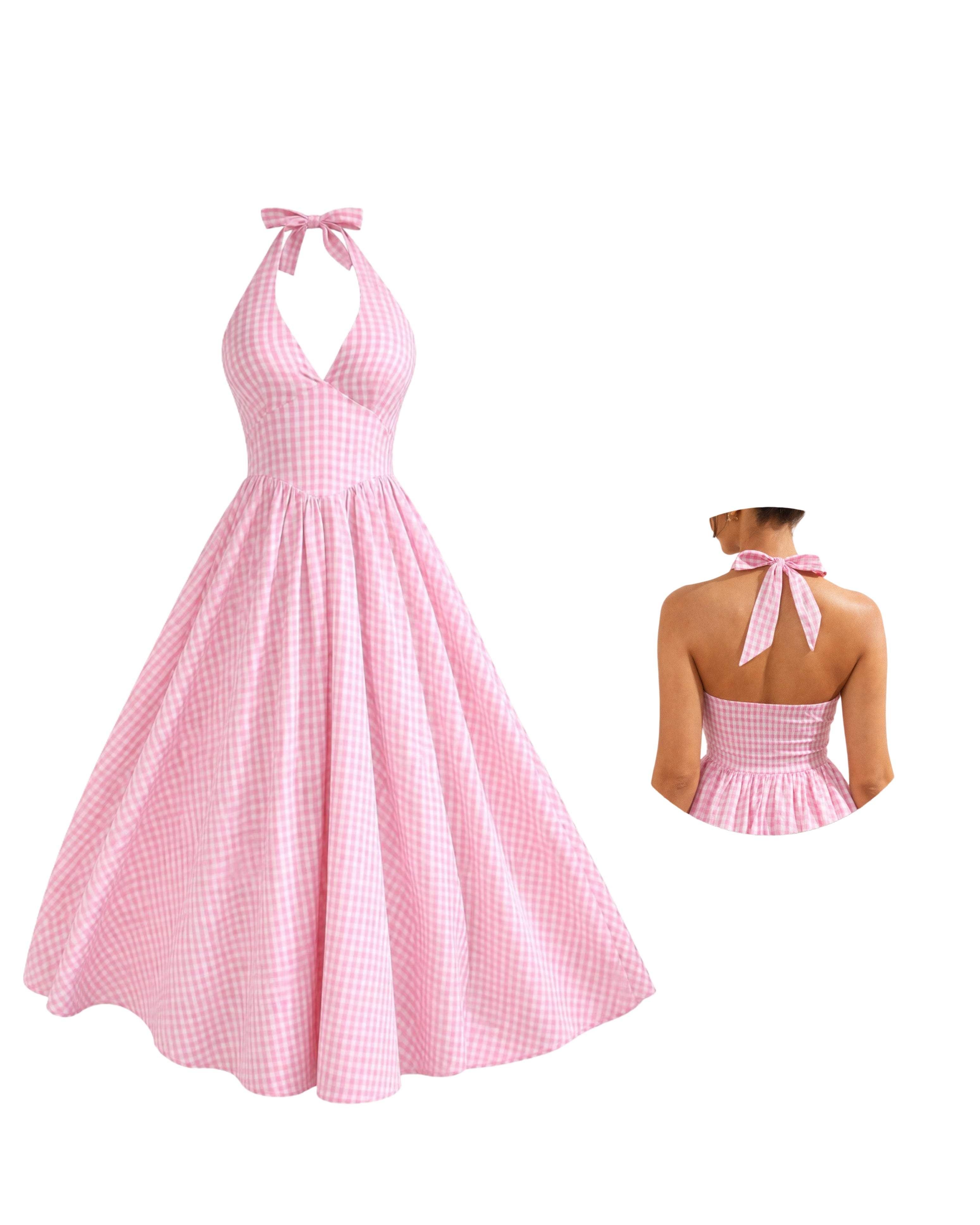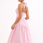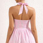 Vintage Charm Pink Check Halter Dress