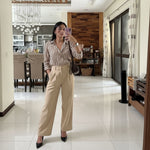 Beidge high waist pant (trouser ) | Brown striped shirt (women )